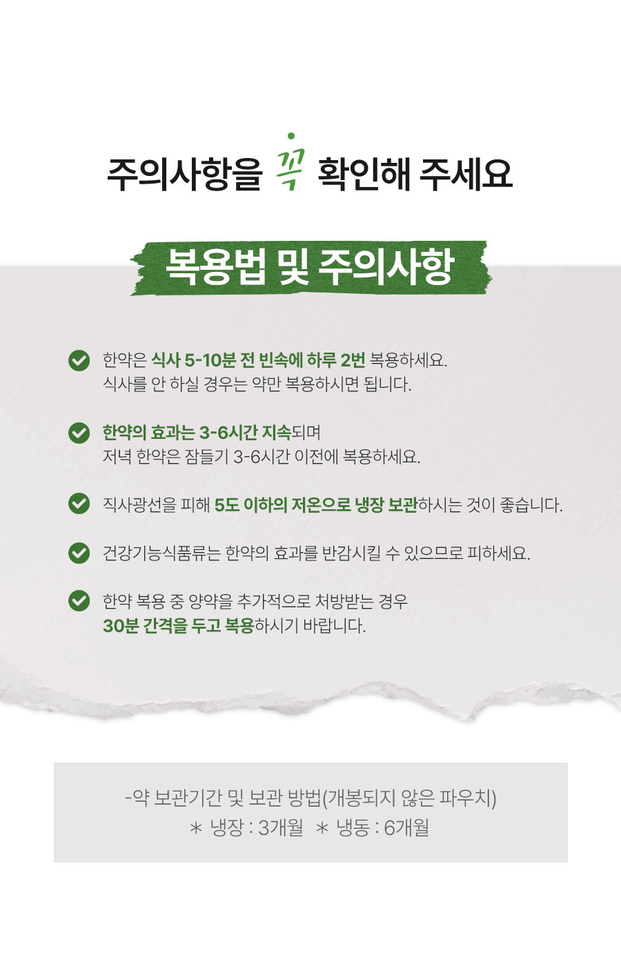 - 처방 후 조제되는 한약 특성상 신선제품으로 재판매가 어려우니 신중하게 구매 부탁드립니다.